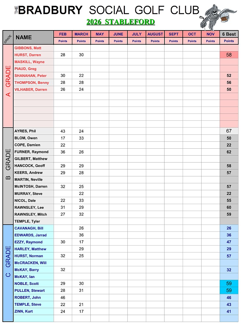 2026 Stableford Scores